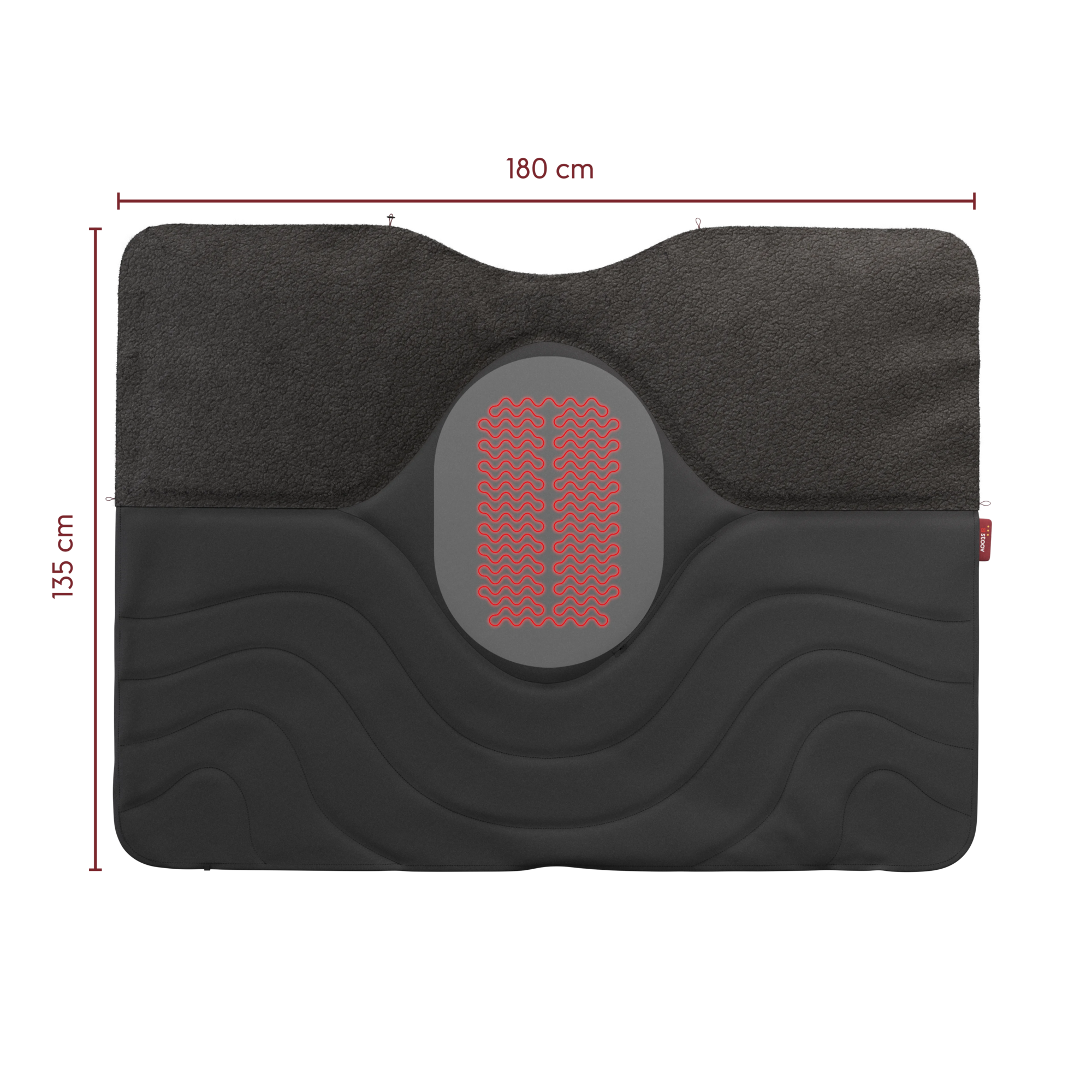 Couverture chauffante sans fil équipée de la technologie infrarouge, avec trois niveaux de chaleur offrant jusqu’à 58 °C et 5 heures d’autonomie.